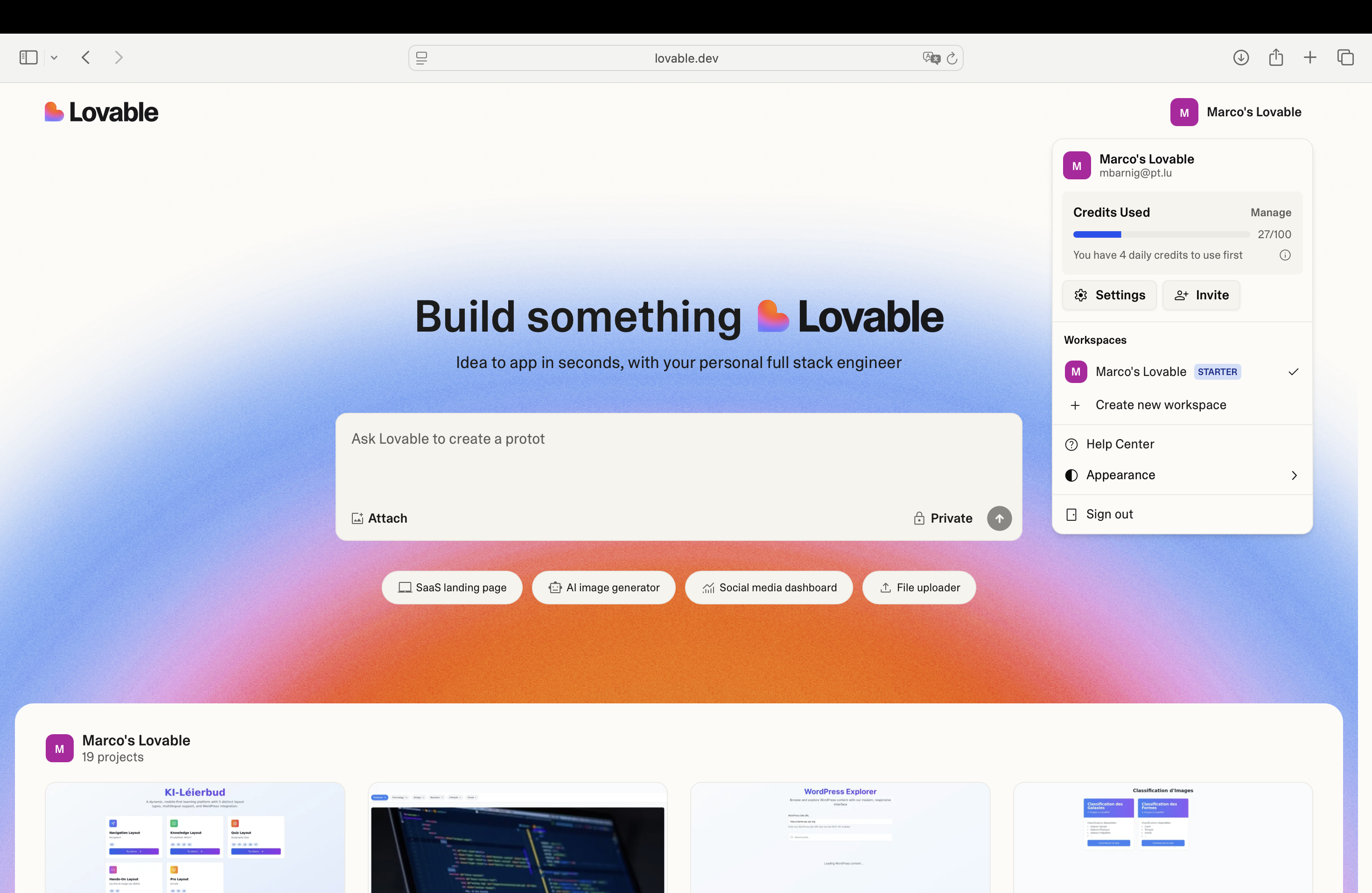 - I tested the first version of the app and started a chat with Lovable to correct, change and improve the code