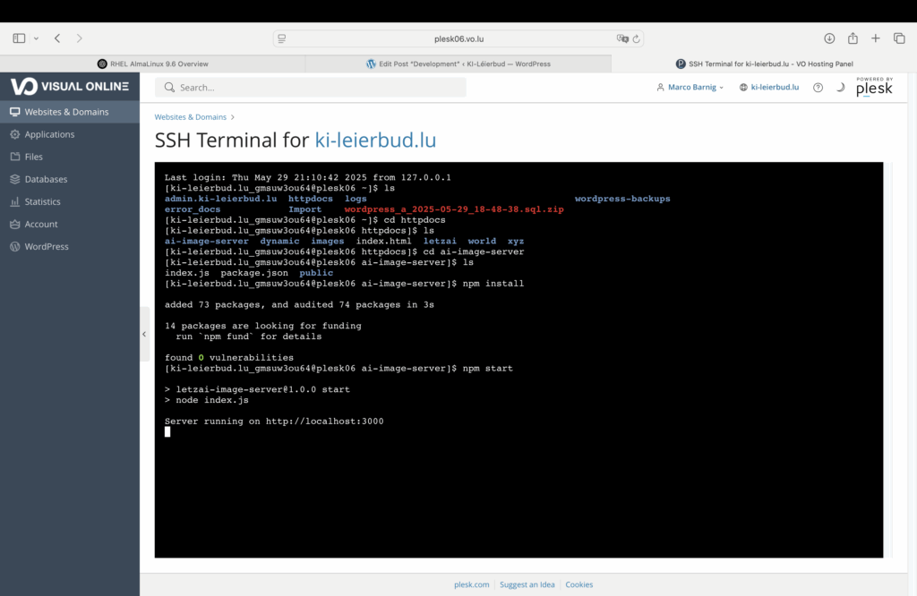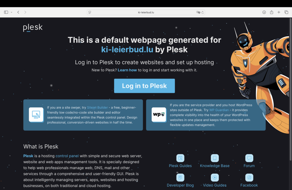 This was the default home-page of ki-leierbud.lu in the new Almalinux 9.6 Server hosted by Visual Online.