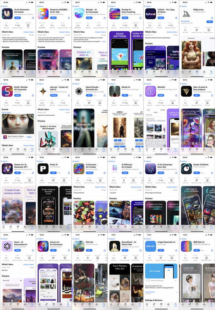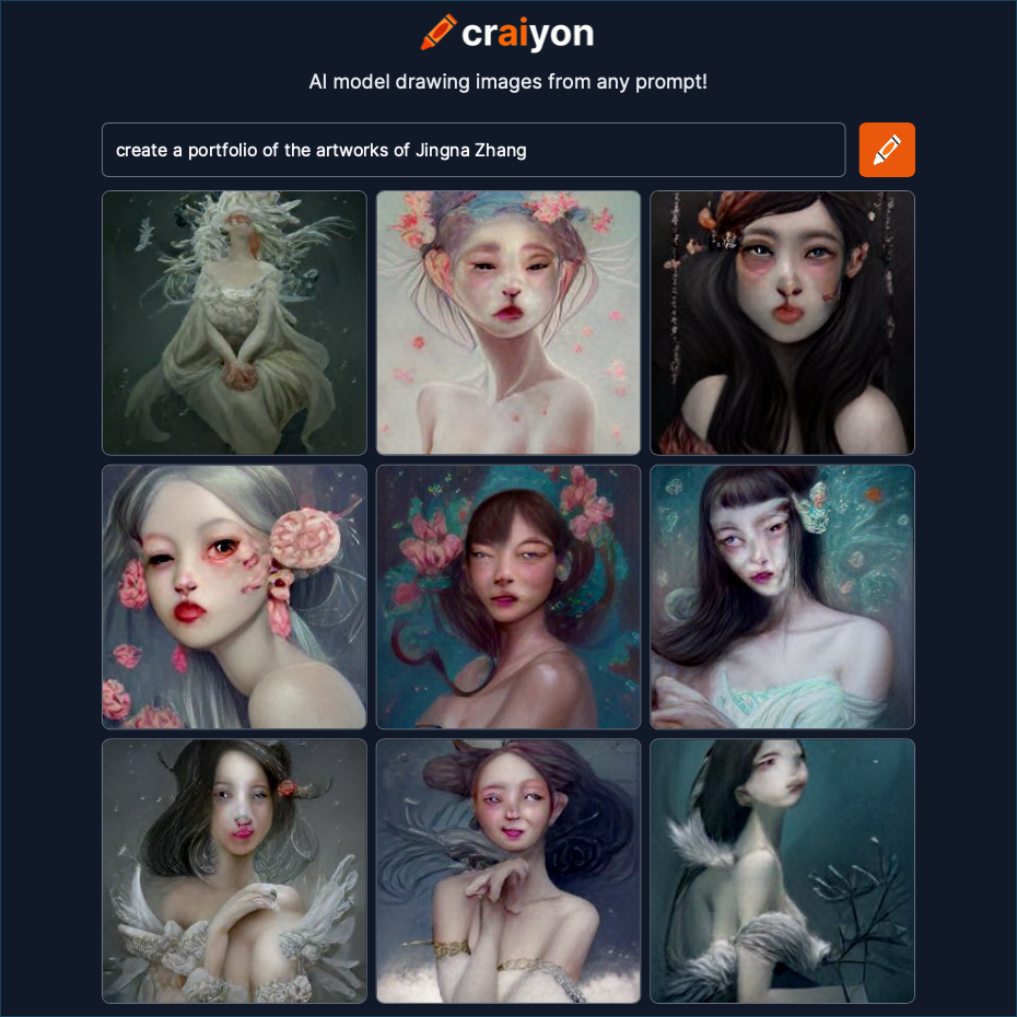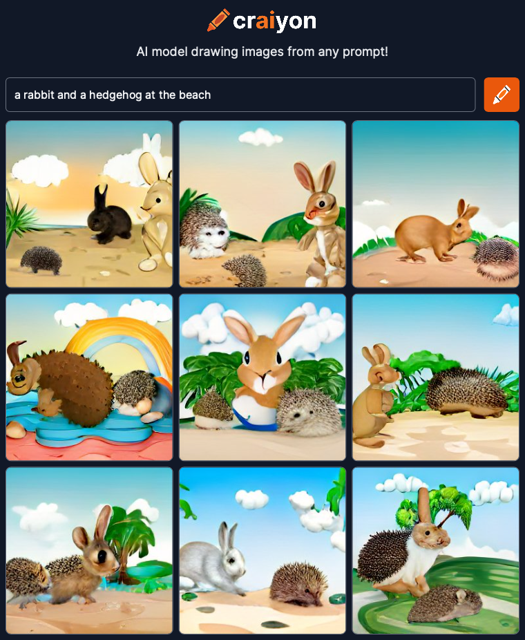 Lorsqu’on soumettait une description sur Craiyon, 16 images en basse résolution étaient produites, et les 9 meilleures s’affichaient à l’écran.