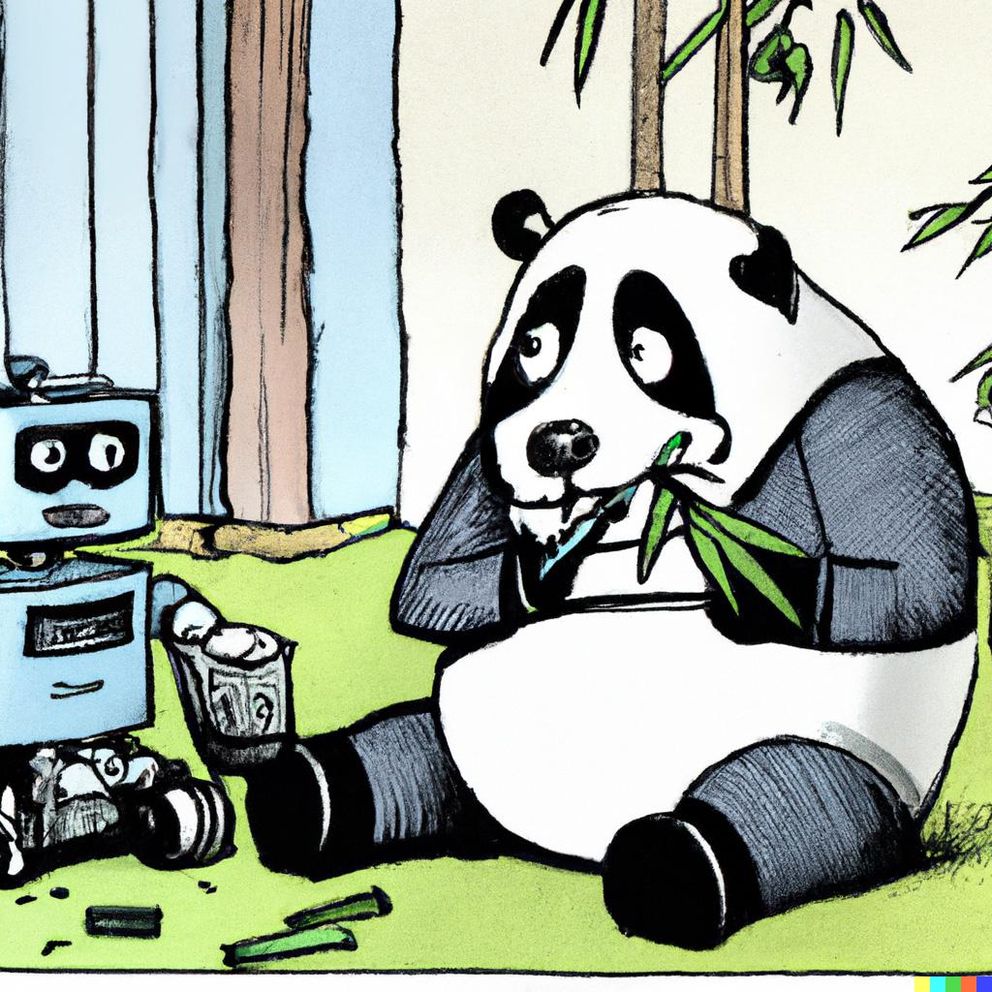 My first AI video end 2022 : A panda playing chess on the beach.