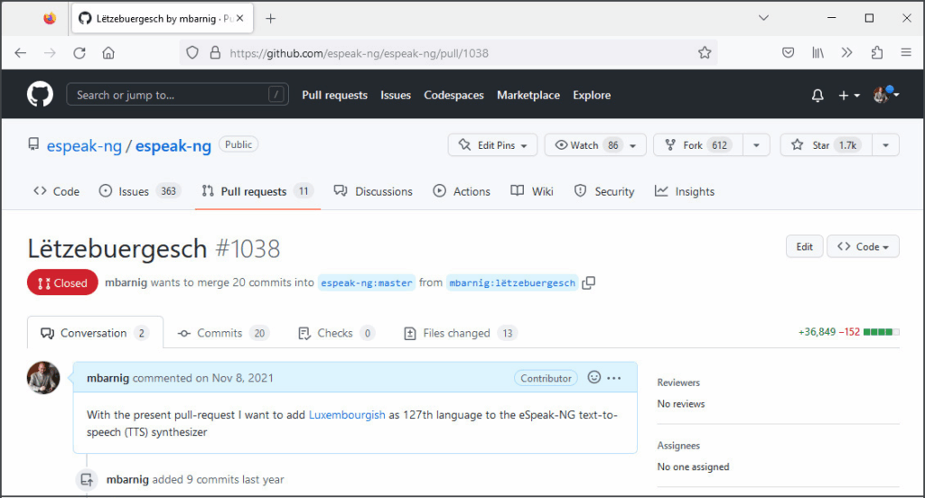 Pull request for my luxembourgish eSpeak-NG module (November 2021)
