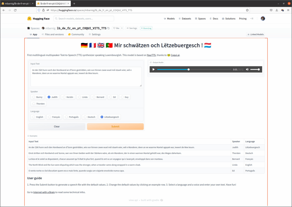 My HuggingFace demo space of a multilingual TTS model (2022)